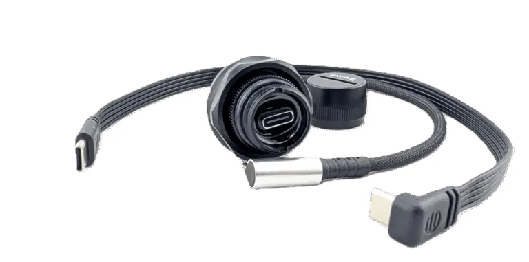 - Combined power and data – Charge and transfer files simultaneously without opening the housing.